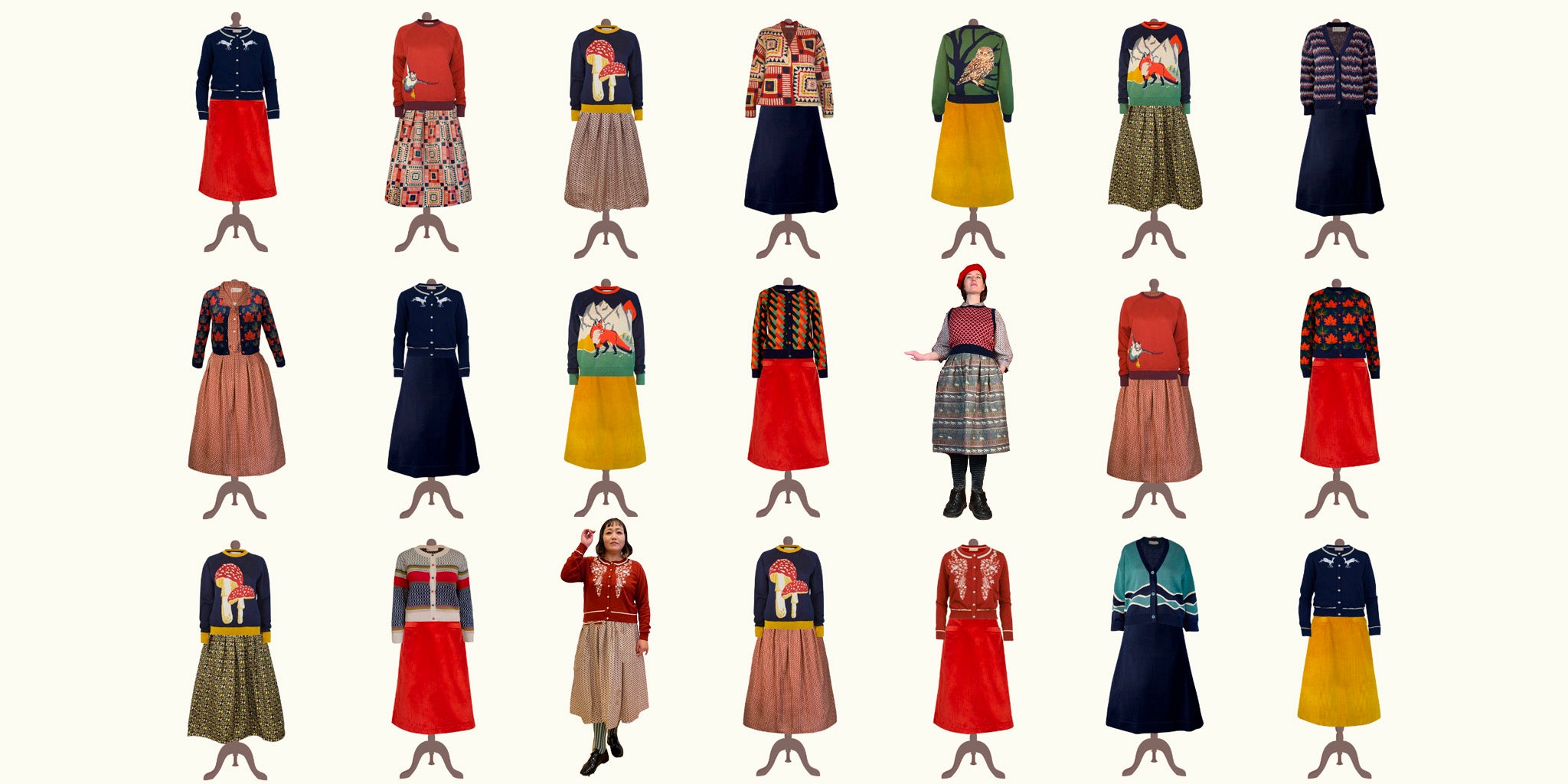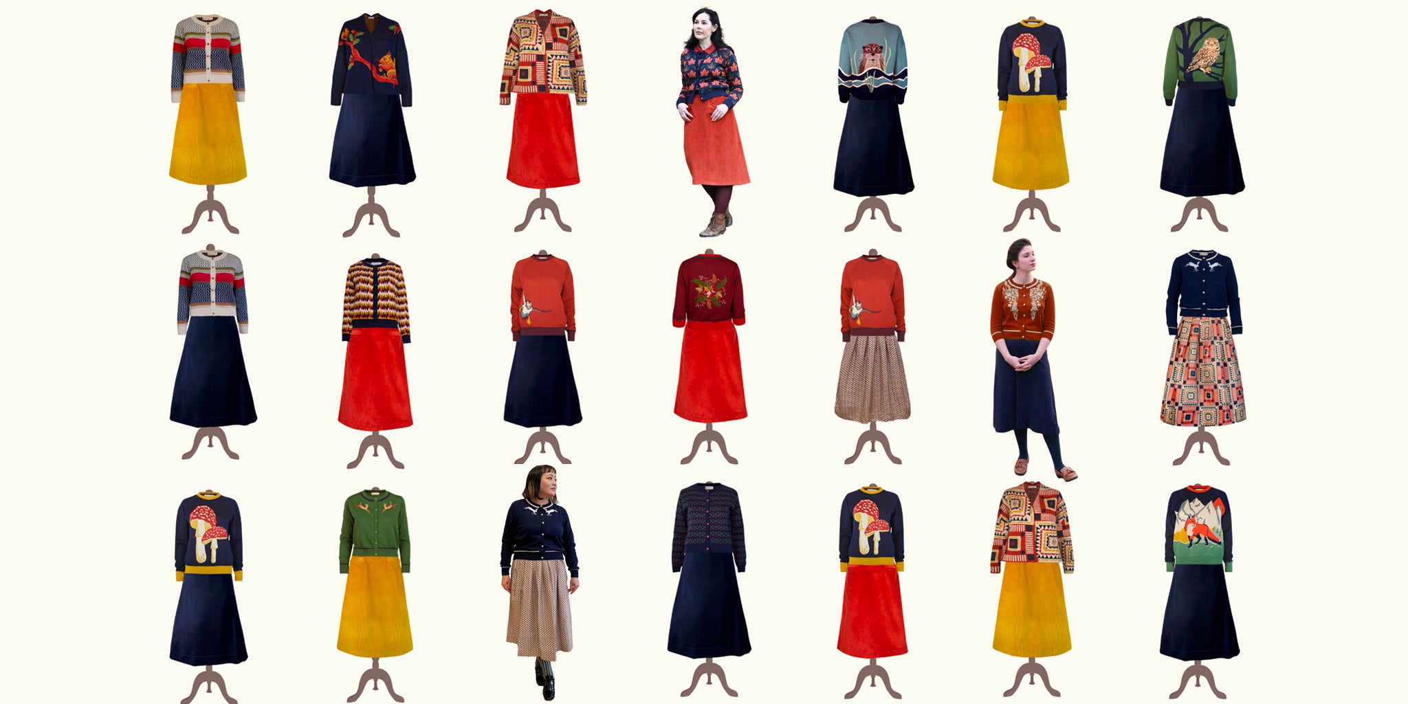 自然と動物はいつもブライオニーの一番大きなテーマ。とにかく可愛い動物達や、リアルな表情のタイガー、重ねた模様と色が美しい羽根など、 絵本を見ている様なコレクションです。