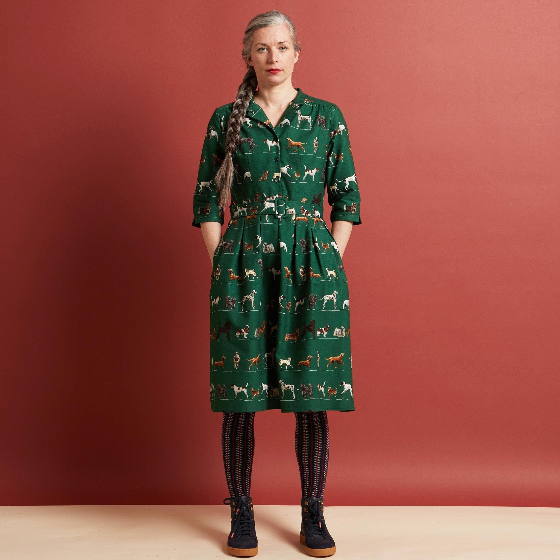 発売する度大人気の”ポーセリンドッグ”が帰ってきました ♪ ヨーロッパの骨董屋さんや蚤の市などでよく見かける小さな磁器のオブジェ。その中できっとコレクターも多いであろう犬の置き物がお行儀よく並んで描かれています。ベースカラーはそんな磁器の犬たちの姿がよく映えるような、落ち着いたディープグリーン。
