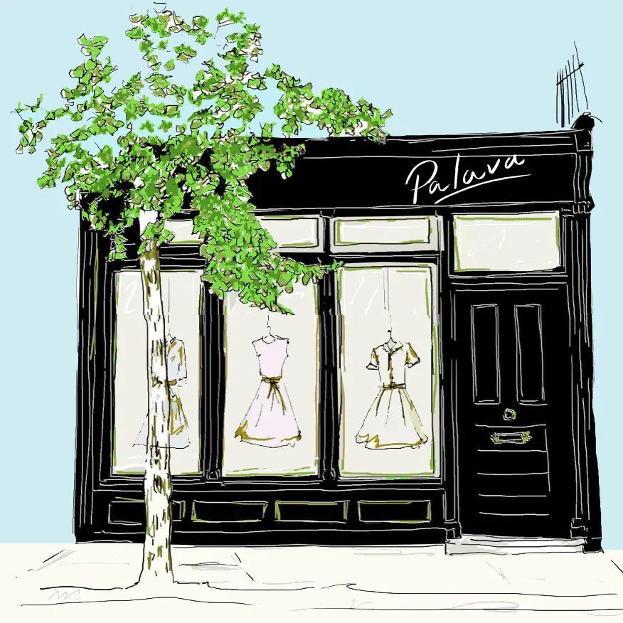 パラバのプリント生地は、全てデザイナーのブライオニーがロンドンの小さなアトリエで手描きするイラストから生まれます。そして縫製は、地元イギリスを中心に、近隣のヨーロッパの工房で、適正な労働環境のもとに丁寧に作業されています。(生地、型などにより縫製国は異なります)
