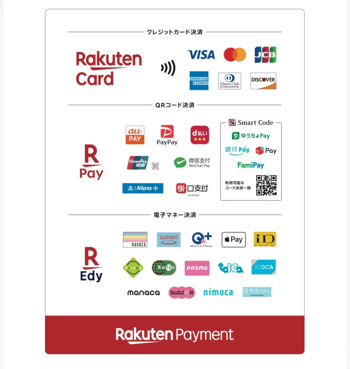 *お支払いは現金・クレジットカード・電子マネー・バーコード決済など画像にある決済がご利用いただけます。