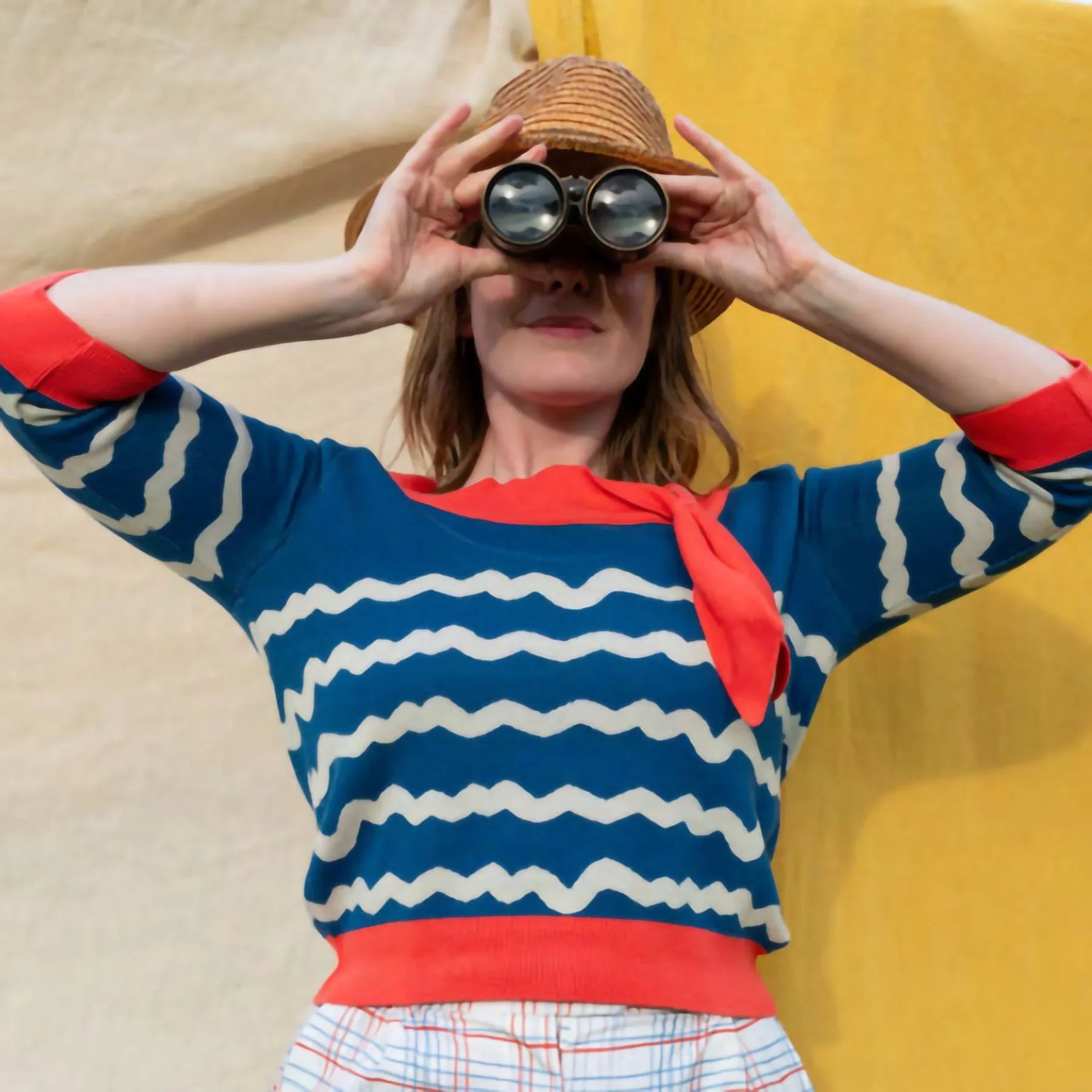 大人マリンをレベルアップするアメリー。今年はネイビーになんとも絶妙なコーラルの色合わせで届きました。不揃いな波々もパラバフレーバー。