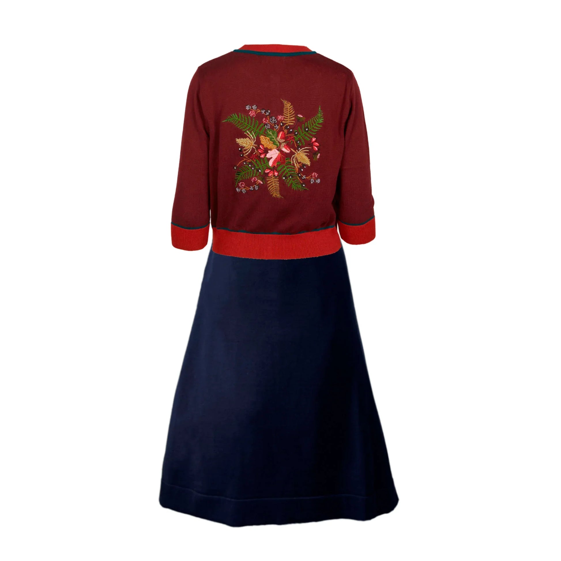 パラバのカーディガンはドレスに合うように短めでコンパクトなデザイン。こちらはコレクターも多い刺繍シリーズ。やや薄手の柔らかなこのニットは、パラバが通年販売している定番のカーディガンコレクション。