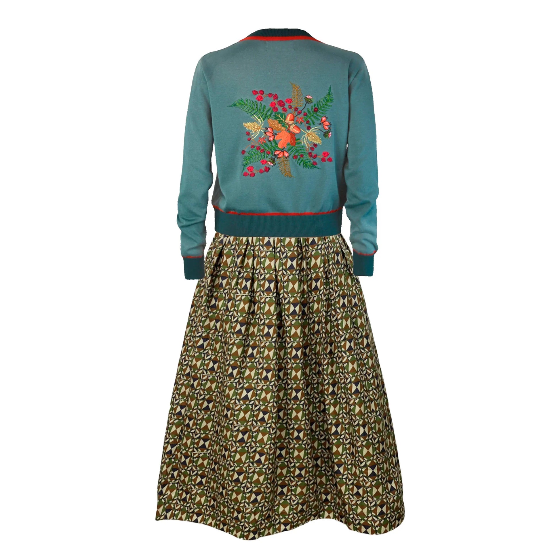 パラバのカーディガンはドレスに合うように短めでコンパクトなデザイン。こちらはコレクターも多い刺繍シリーズ。やや薄手の柔らかなこのニットは、パラバが通年販売している定番のカーディガンコレクション。