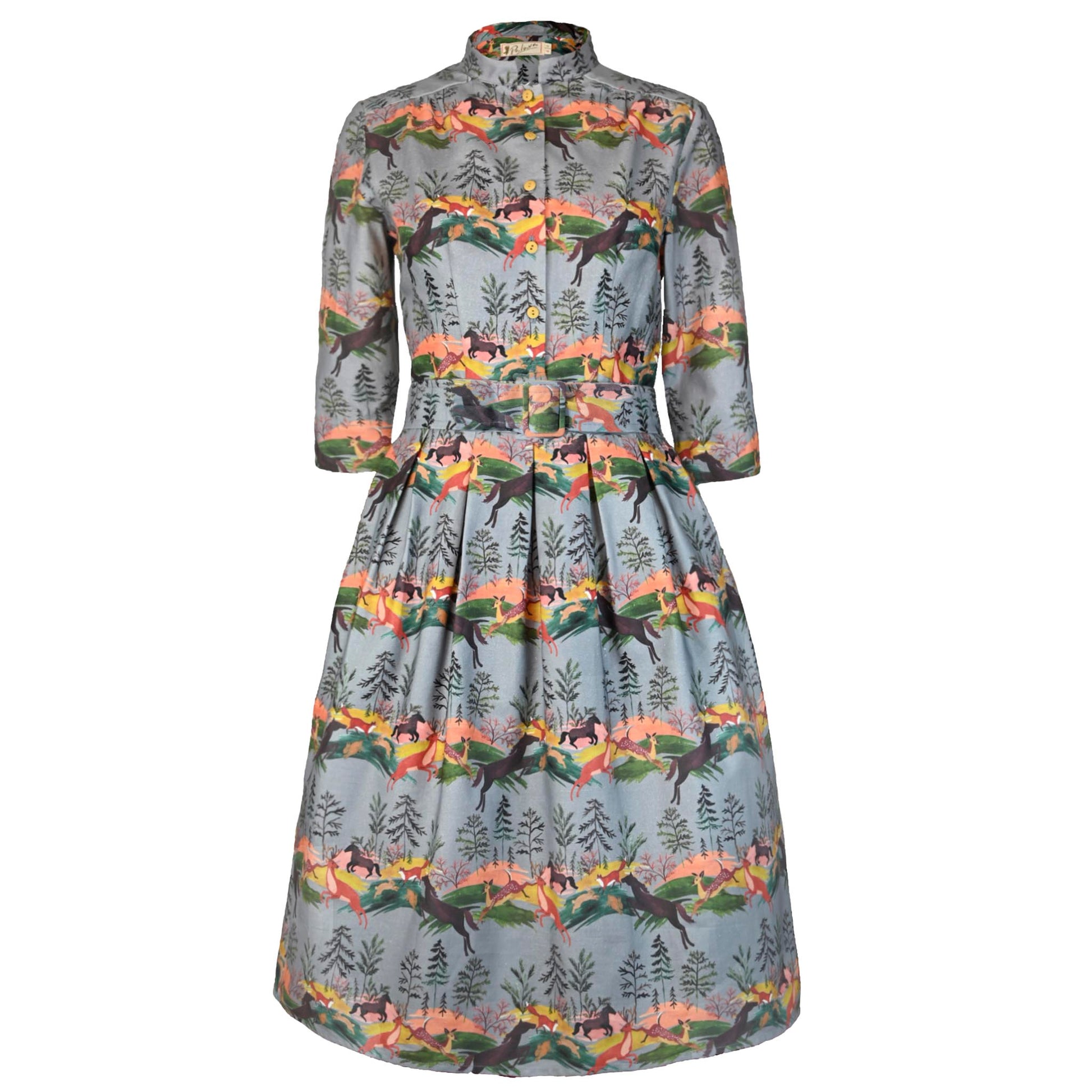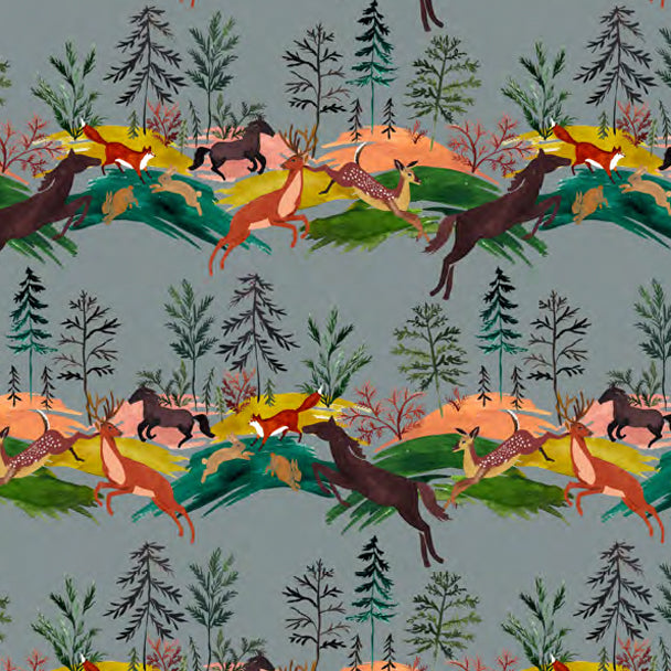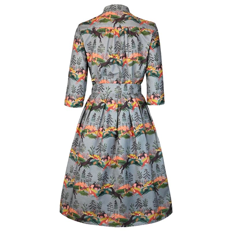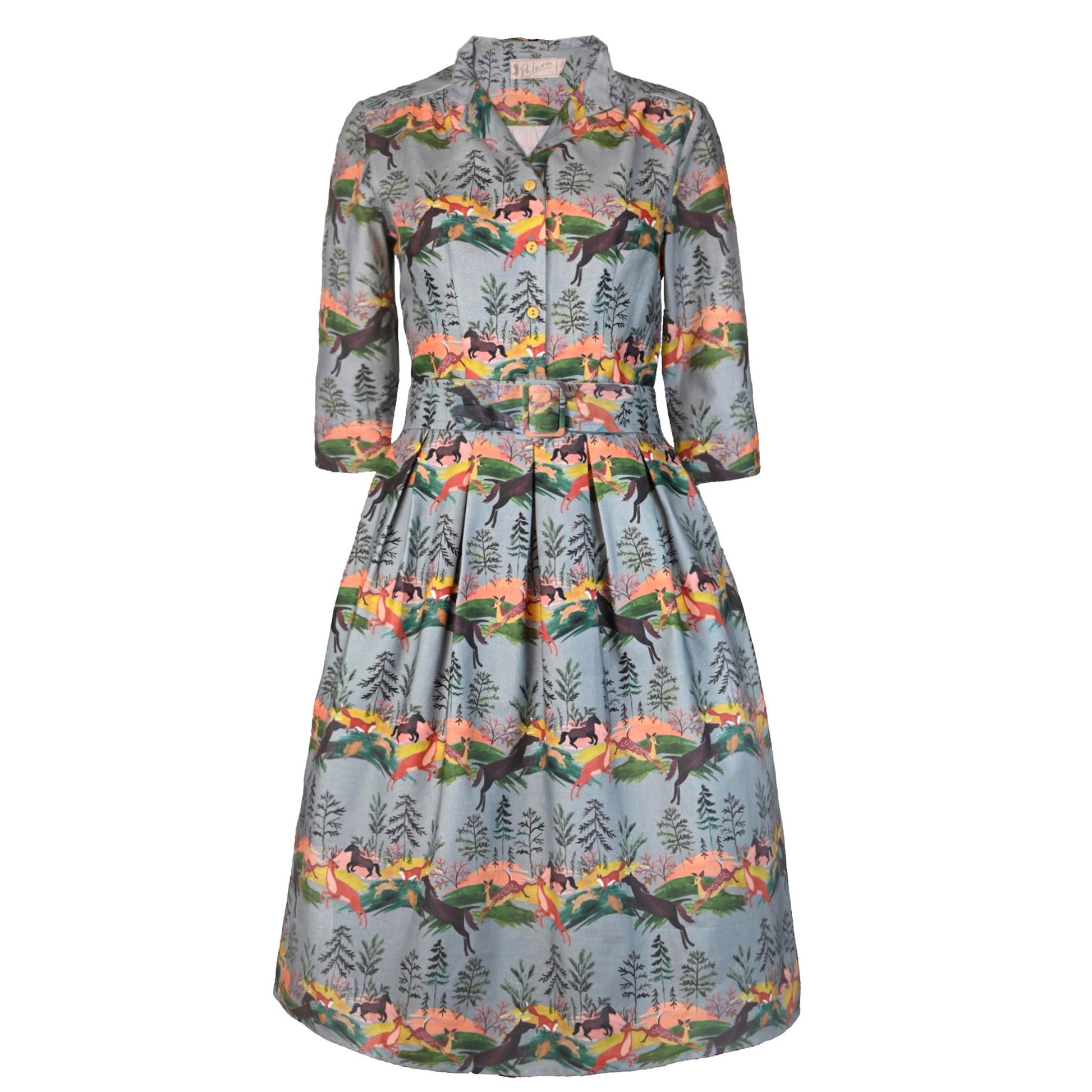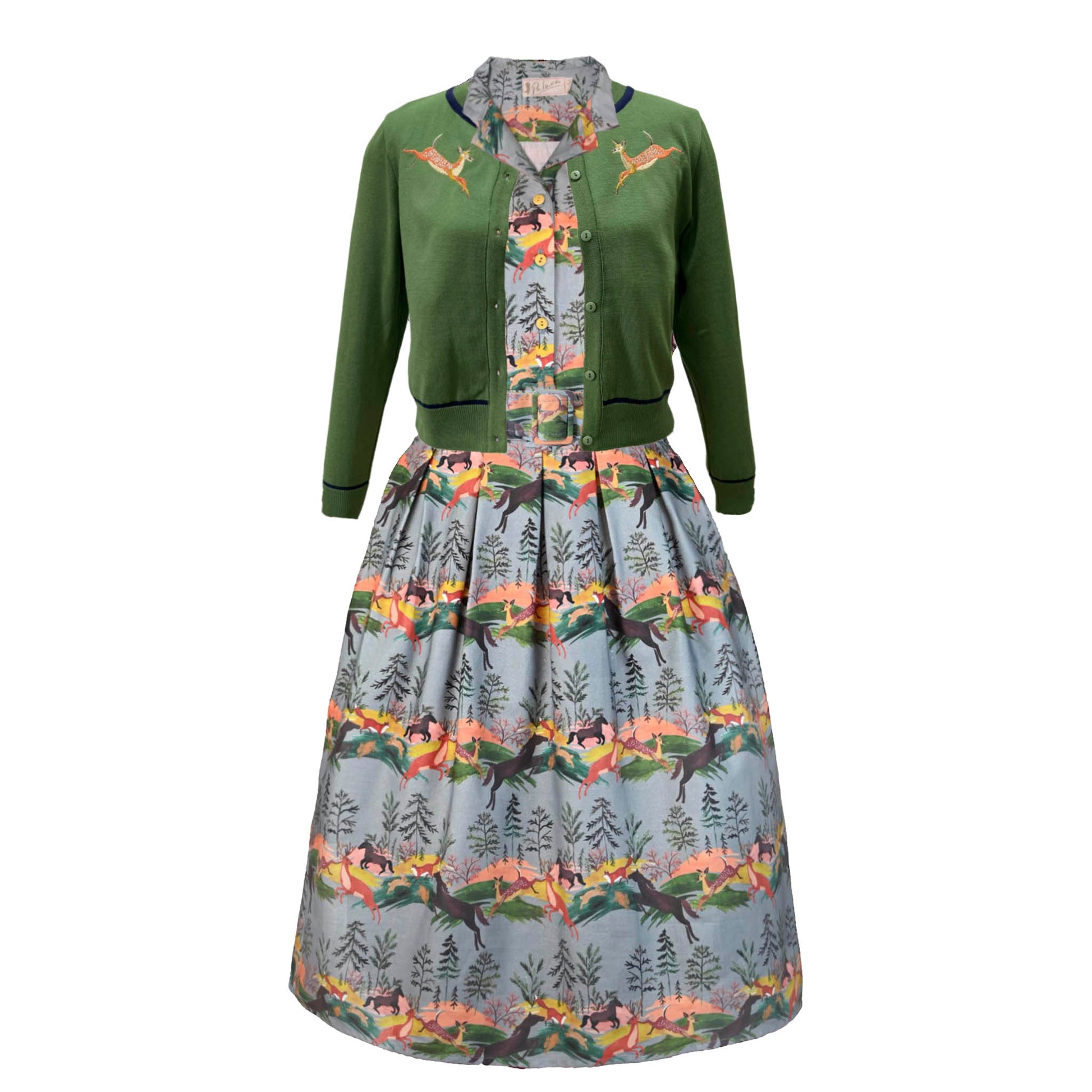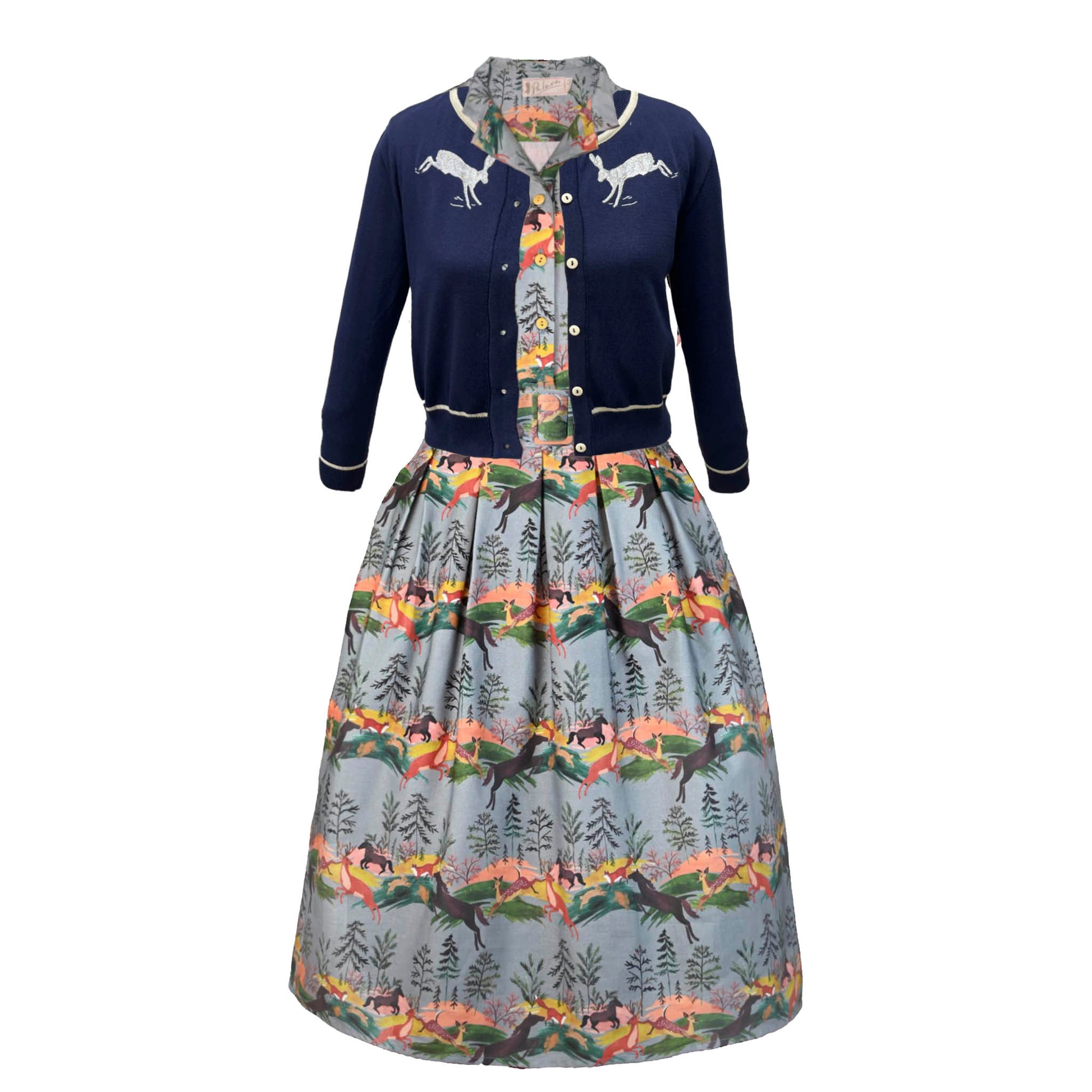 うーん、、、可愛い!!明るいブルーグレーはイングランド定番の薄曇りの空模様。そんな秋空を背景にぴょんぴょん跳ね回る鹿たちがたまらなくラブリー!そして彼らに紛れて(?)、よく見ると馬や狐、兎たちの姿も見られます。ブライオニーと親交の深い北欧デザイナー、インゲボルグが描いたゲストプリント。原画は絵筆使いで手描きされたイラストレーションです。