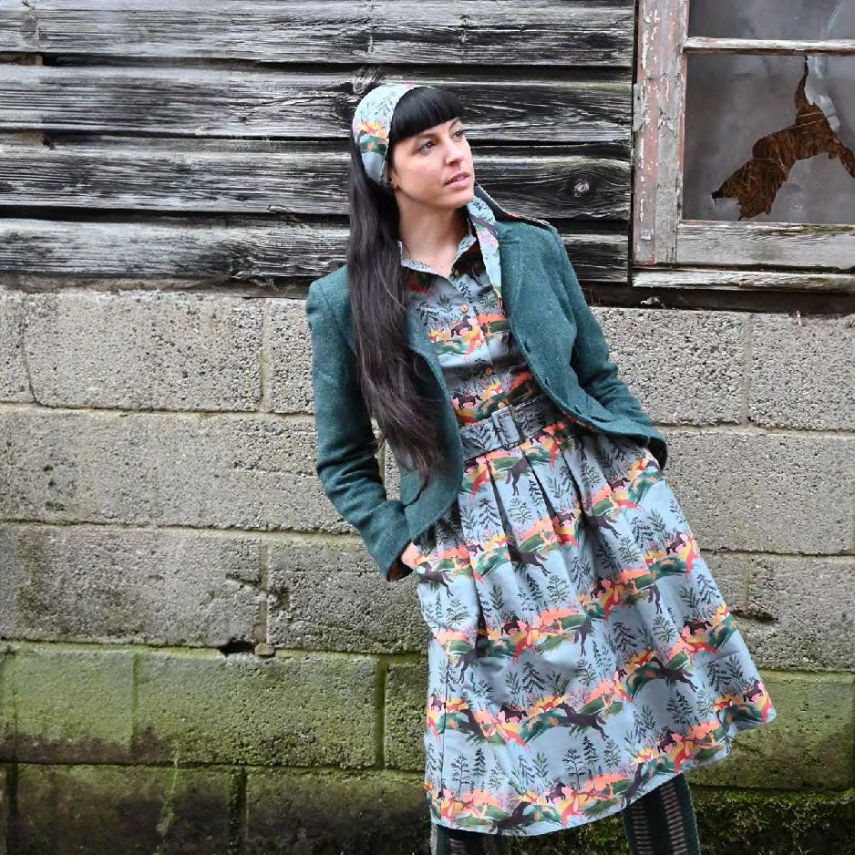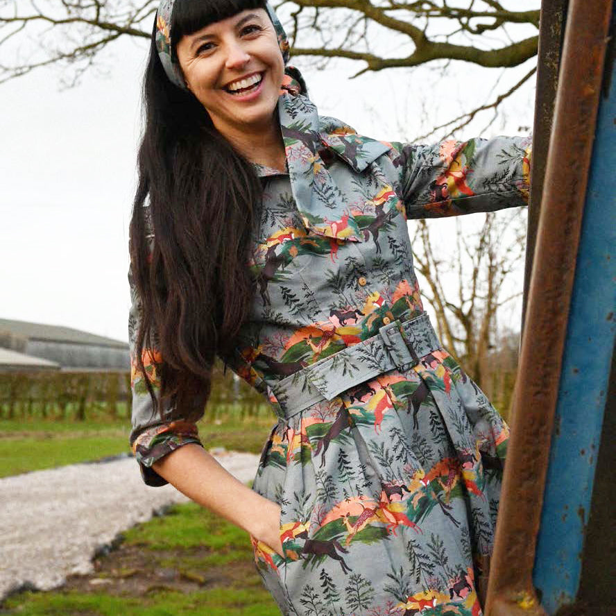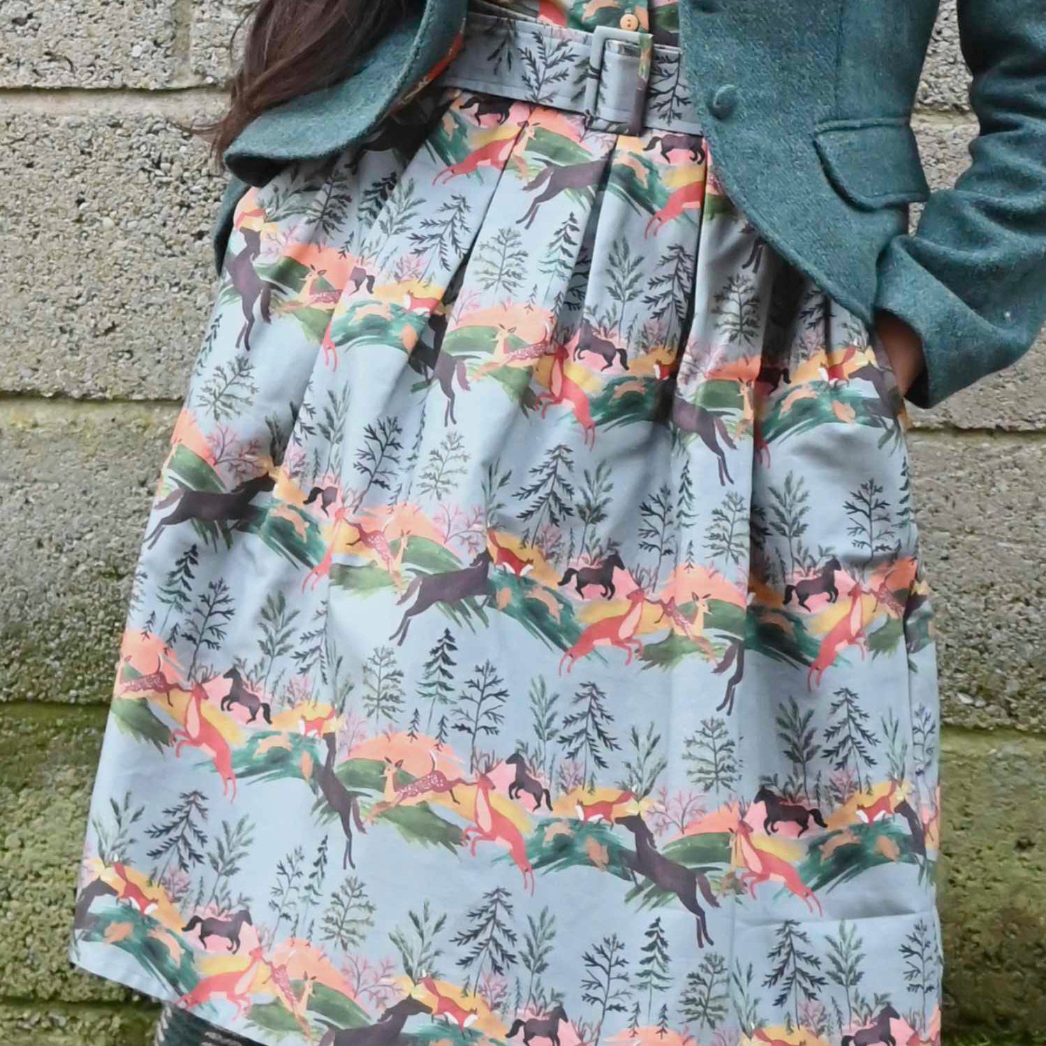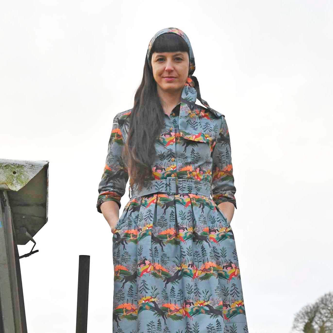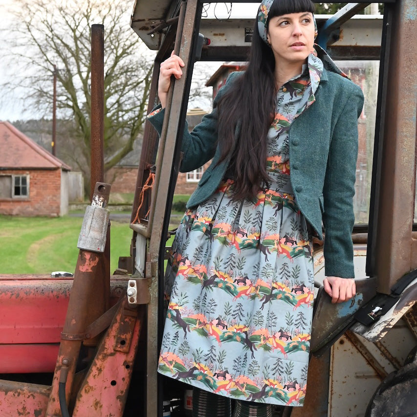 うーん、、、可愛い!!明るいブルーグレーはイングランド定番の薄曇りの空模様。そんな秋空を背景にぴょんぴょん跳ね回る鹿たちがたまらなくラブリー!そして彼らに紛れて(?)、よく見ると馬や狐、兎たちの姿も見られます。ブライオニーと親交の深い北欧デザイナー、インゲボルグが描いたゲストプリント。原画は絵筆使いで手描きされたイラストレーションです。