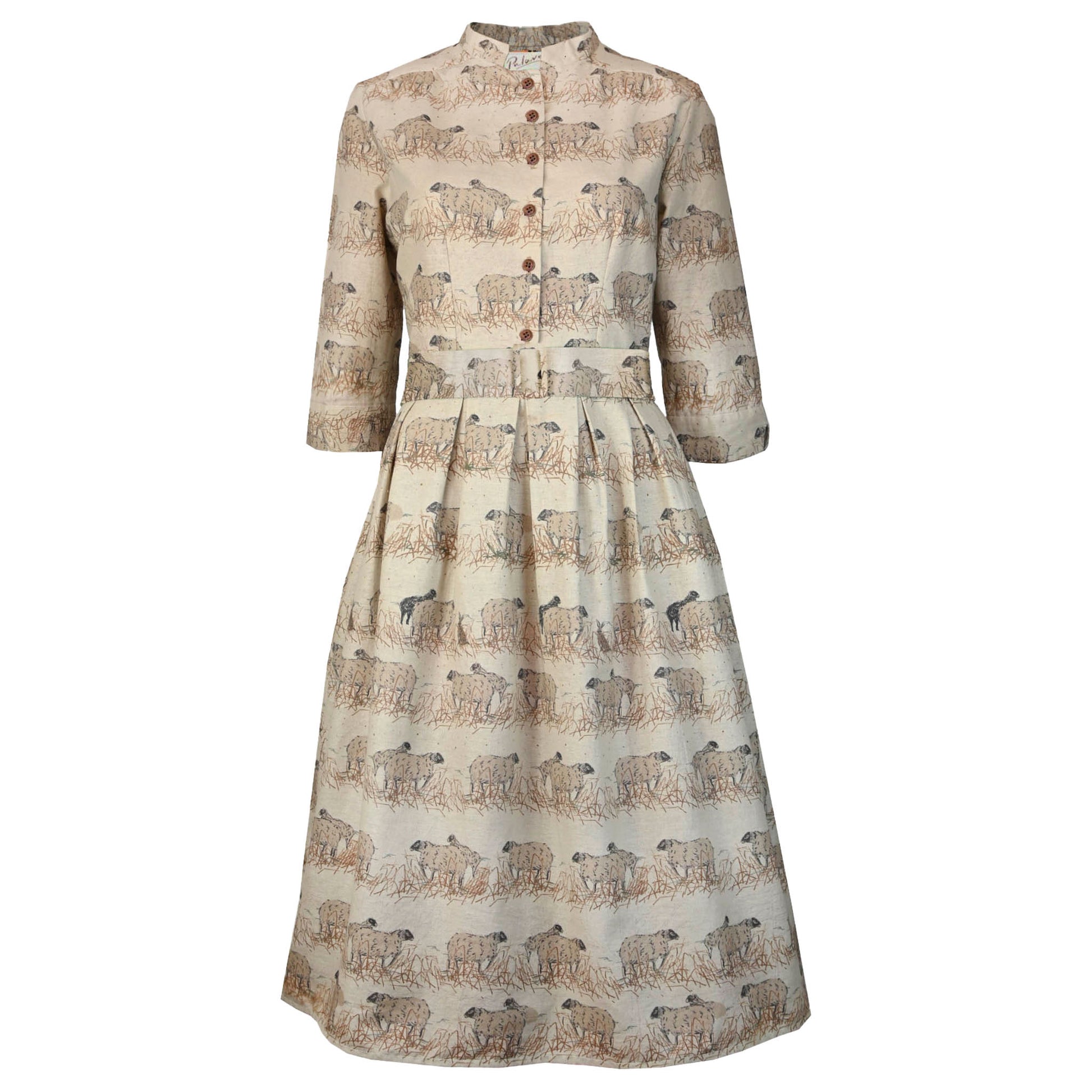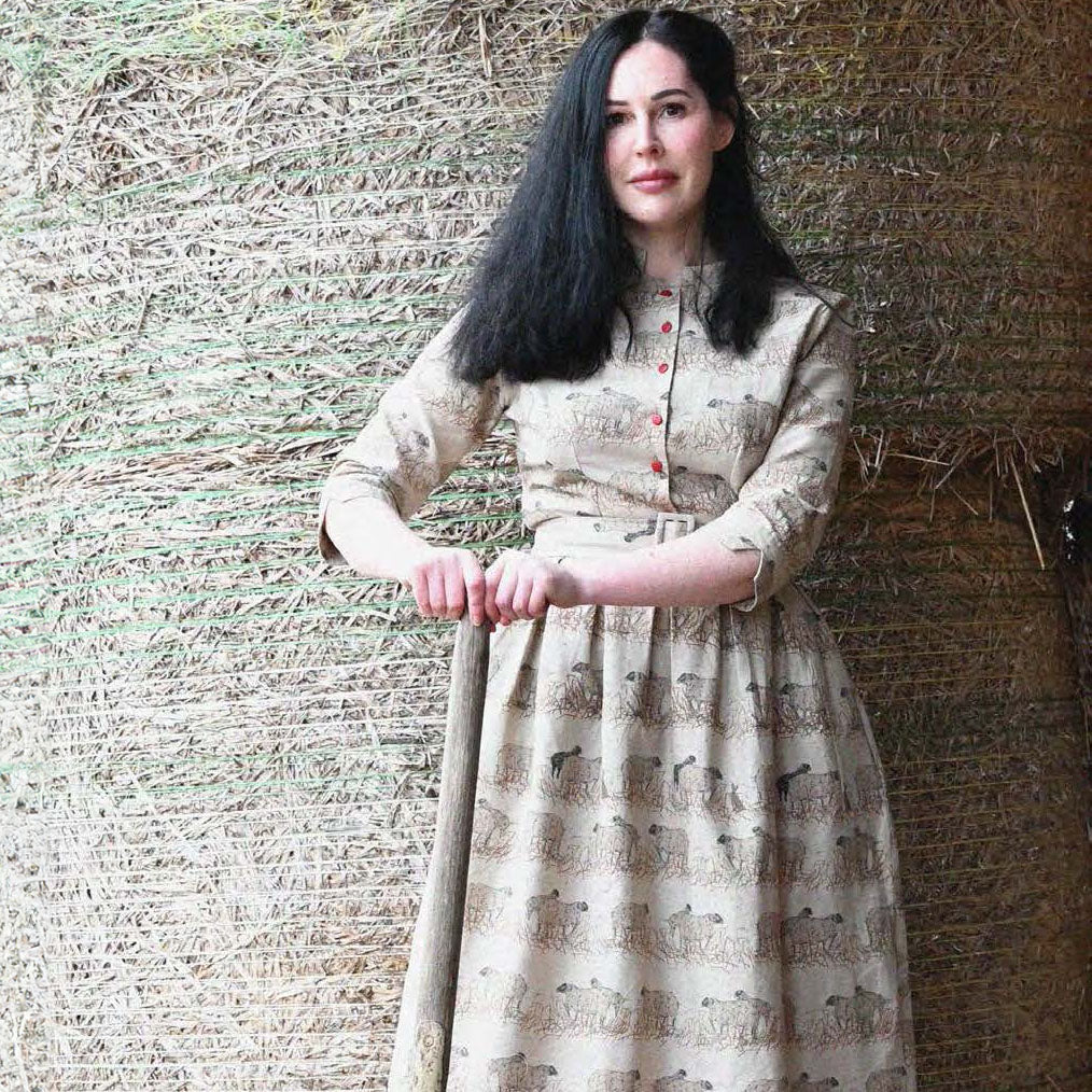 もこもこの羊たちがナチュラルカラーのリネンの上をお散歩中。手描きタッチのこの羊たちは、ブライオニーの故郷、ヨークシャーにあるパラバデリバリー倉庫の”ご近所さん”だそうです。実在の羊たちと思うと更に可愛い・・・