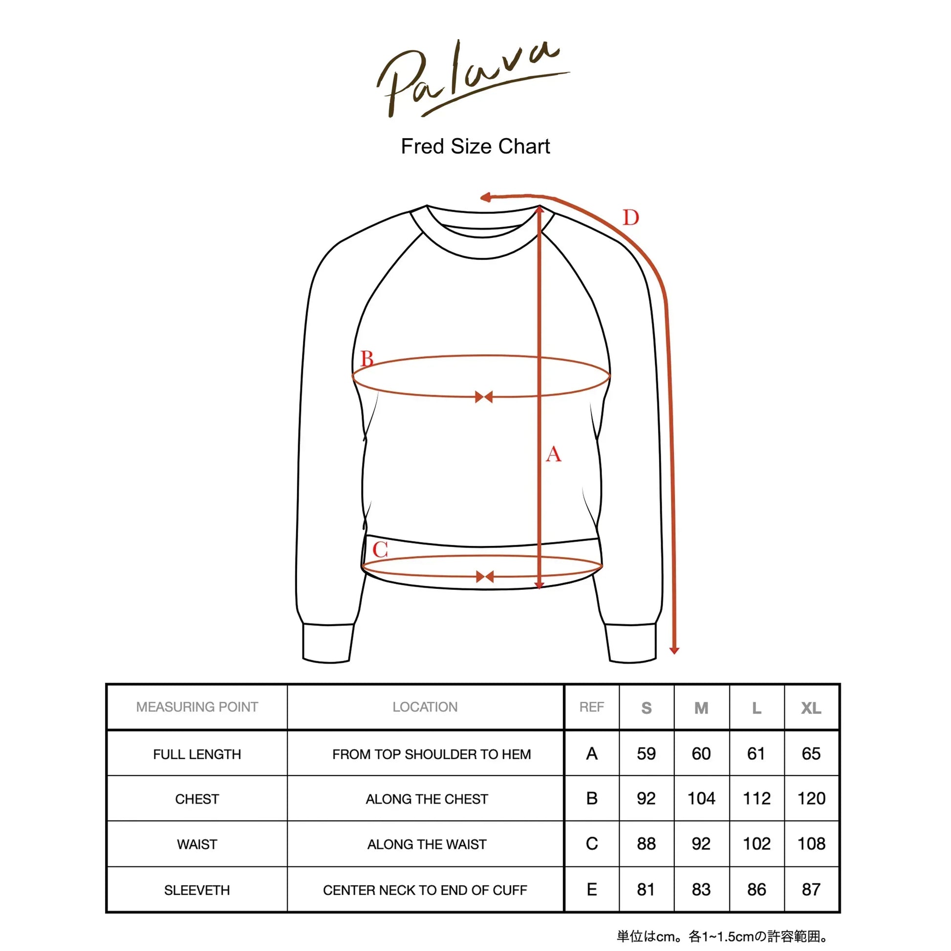ラグランスリーブでゆったり仕立てのフレッドは今シーズンからパラバのニットコレクションに仲間入り。小さめにまとめるか、ゆったり大きめに着るか、サイズガイドと相談してくださいね。