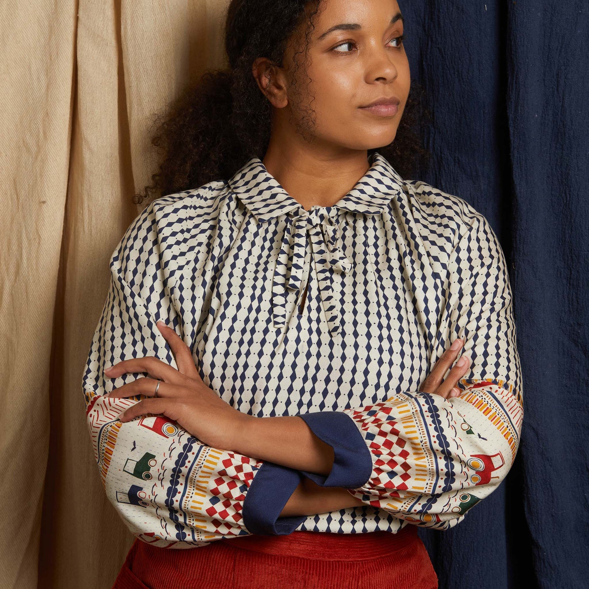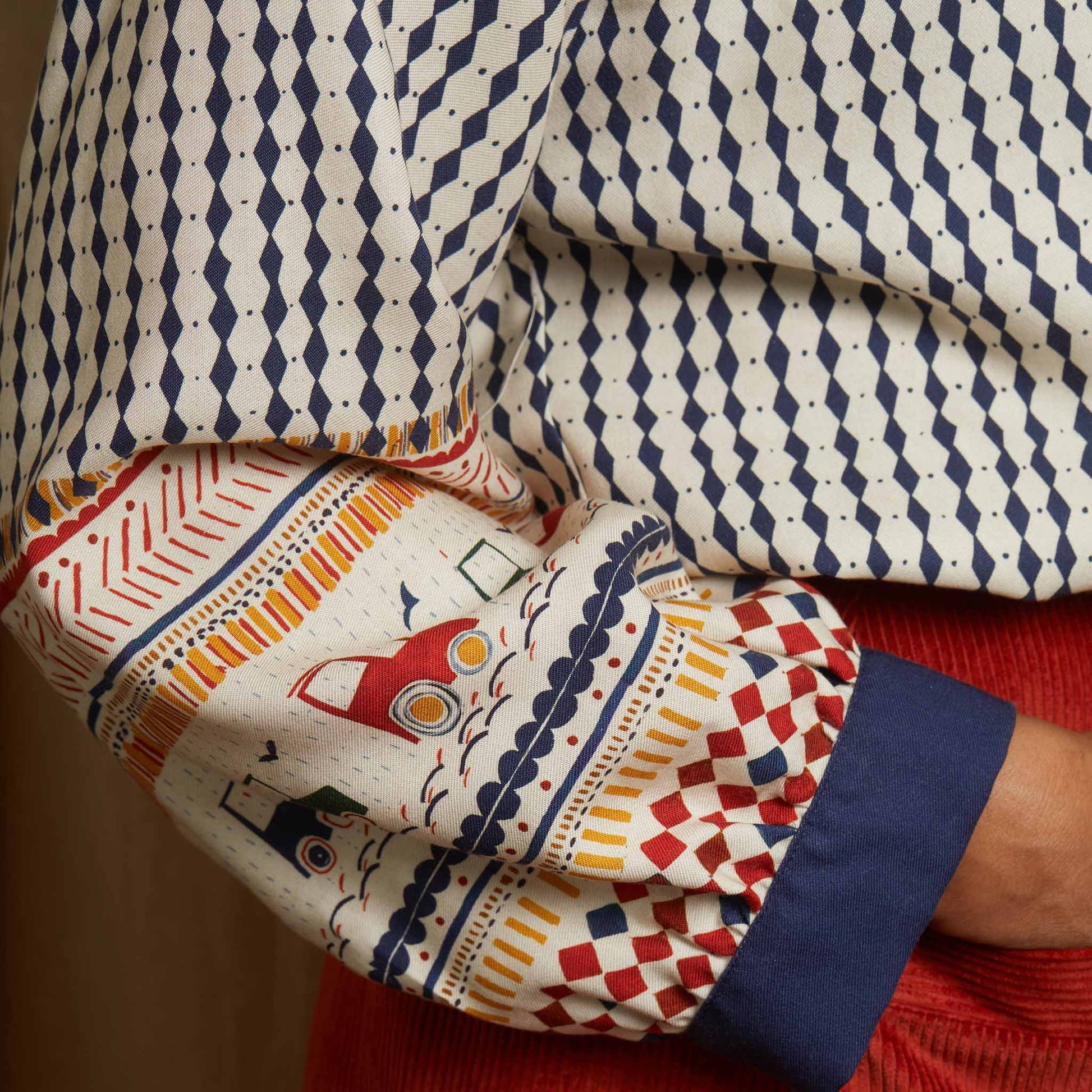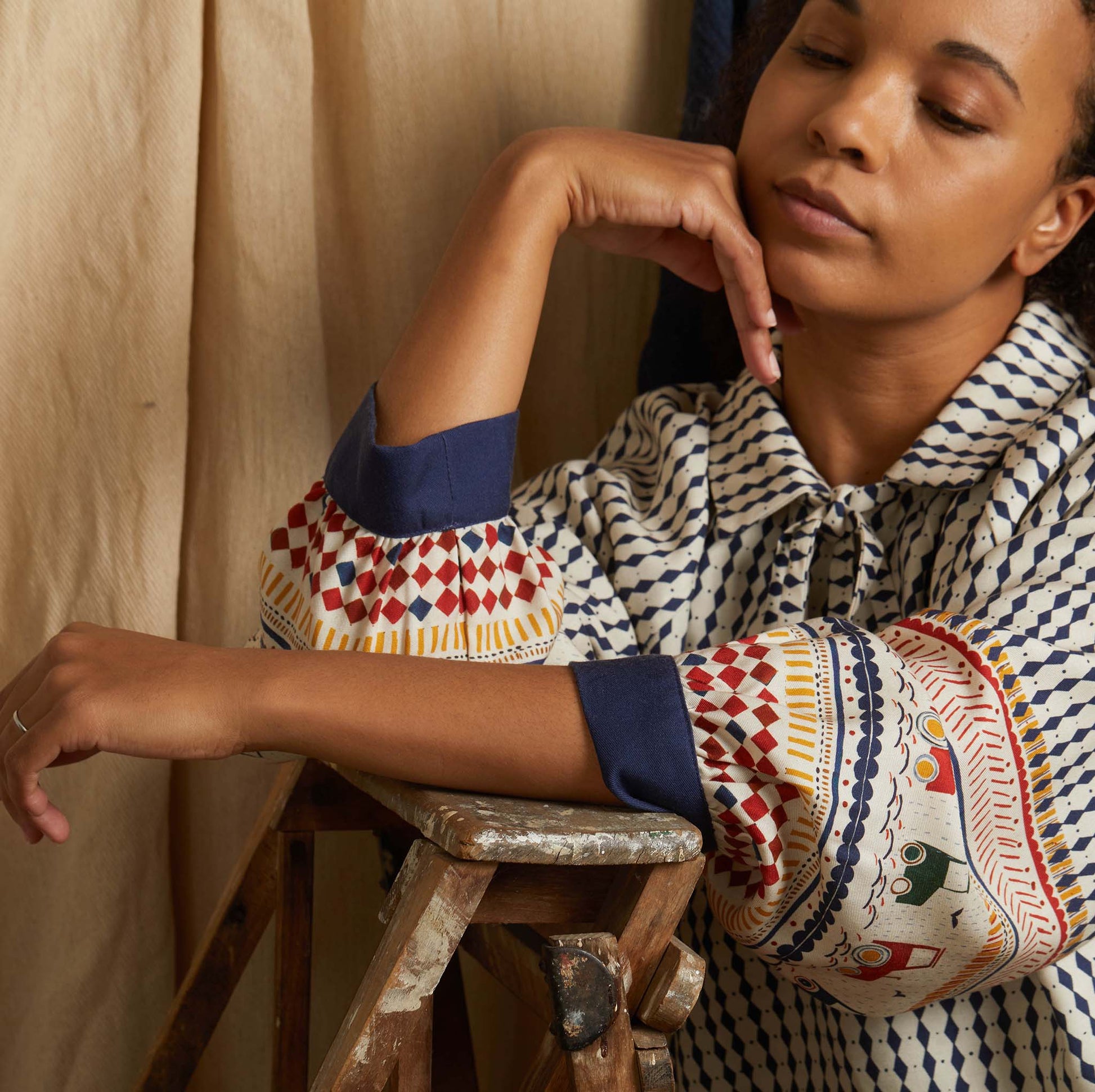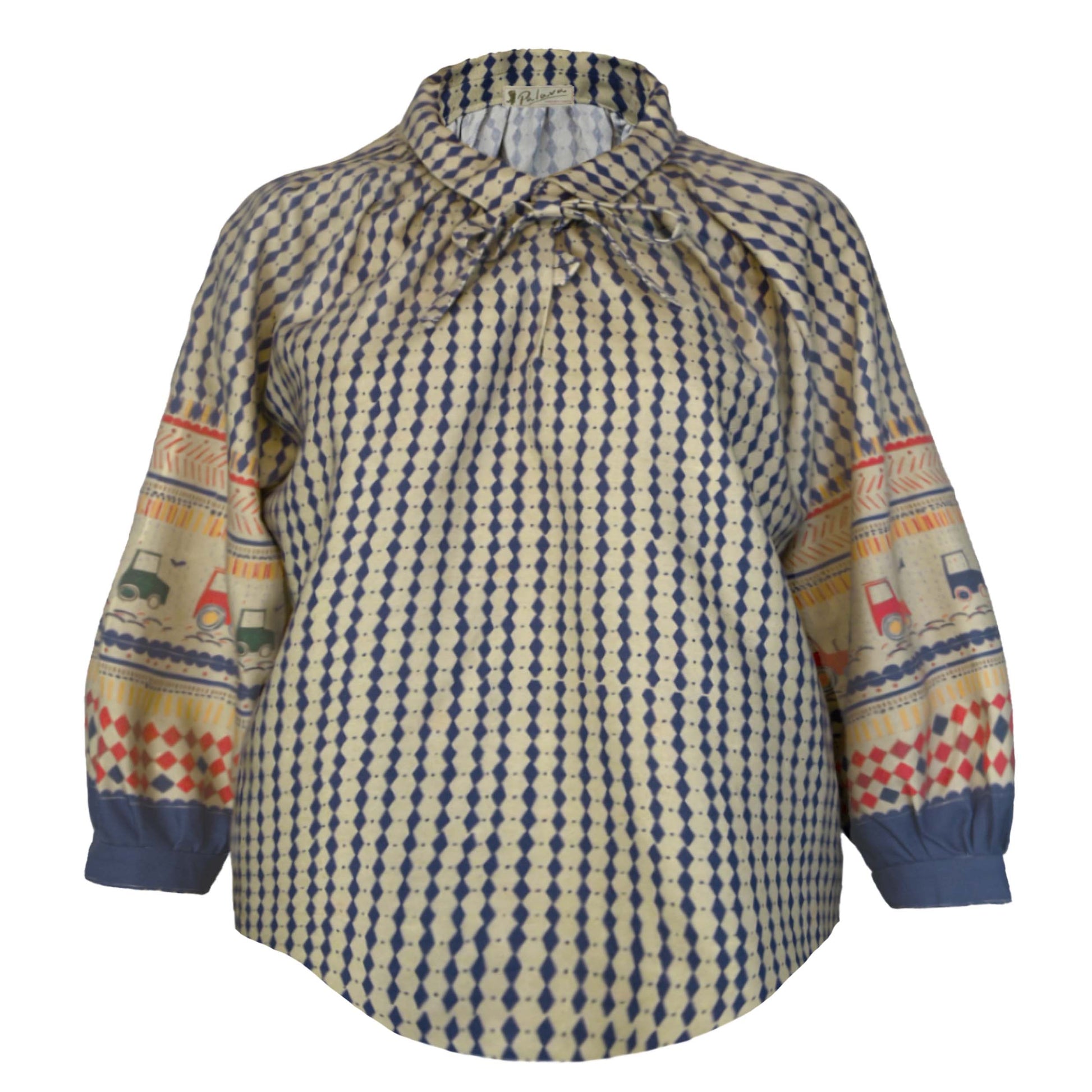 フォークロアなプリントが多い今シーズンのコレクションの中でも特にパラバらしいプレイフルな一着。騒がしい現代のデジタルライフから抜け出して、時代も少し戻したカントリーサイドの断片が素敵に描かれた、アーティスティックなブラウスです。